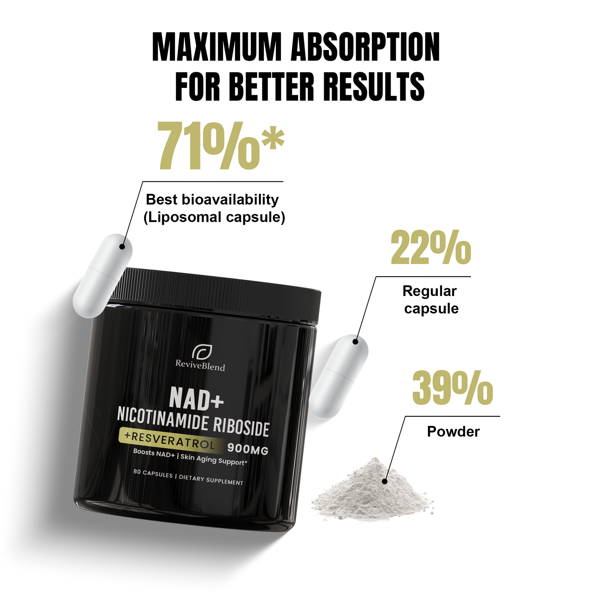 Unlock the power of youthful energy, clarity, and longevity with NAD-Supplement Liposomal Nicotinamide Riboside (NR) 900 combined with Resveratrol—a high-purity, advanced formula designed to revitalize your body, improve focus, and combat the effects of aging. This powerful supplement utilizes liposomal technology for superior absorption, delivering Nicotinamide Riboside directly into your cells, boosting NAD+ levels—critical for cellular energy and repair.